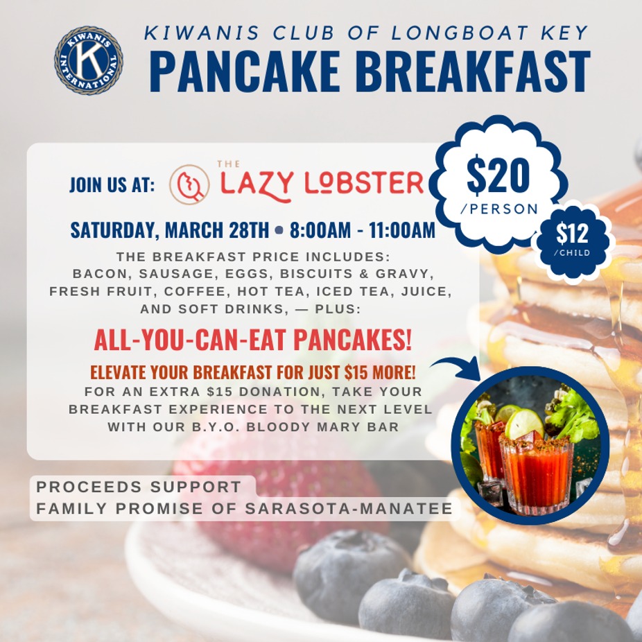 Join us and the Kiwanis Club of Longboat Key for our wonderful pancake breakfast on Saturday, March 28th!