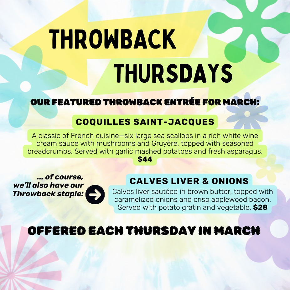 Join us EVERY THURSDAY during the month of MARCH for some delicious throwback dishes.